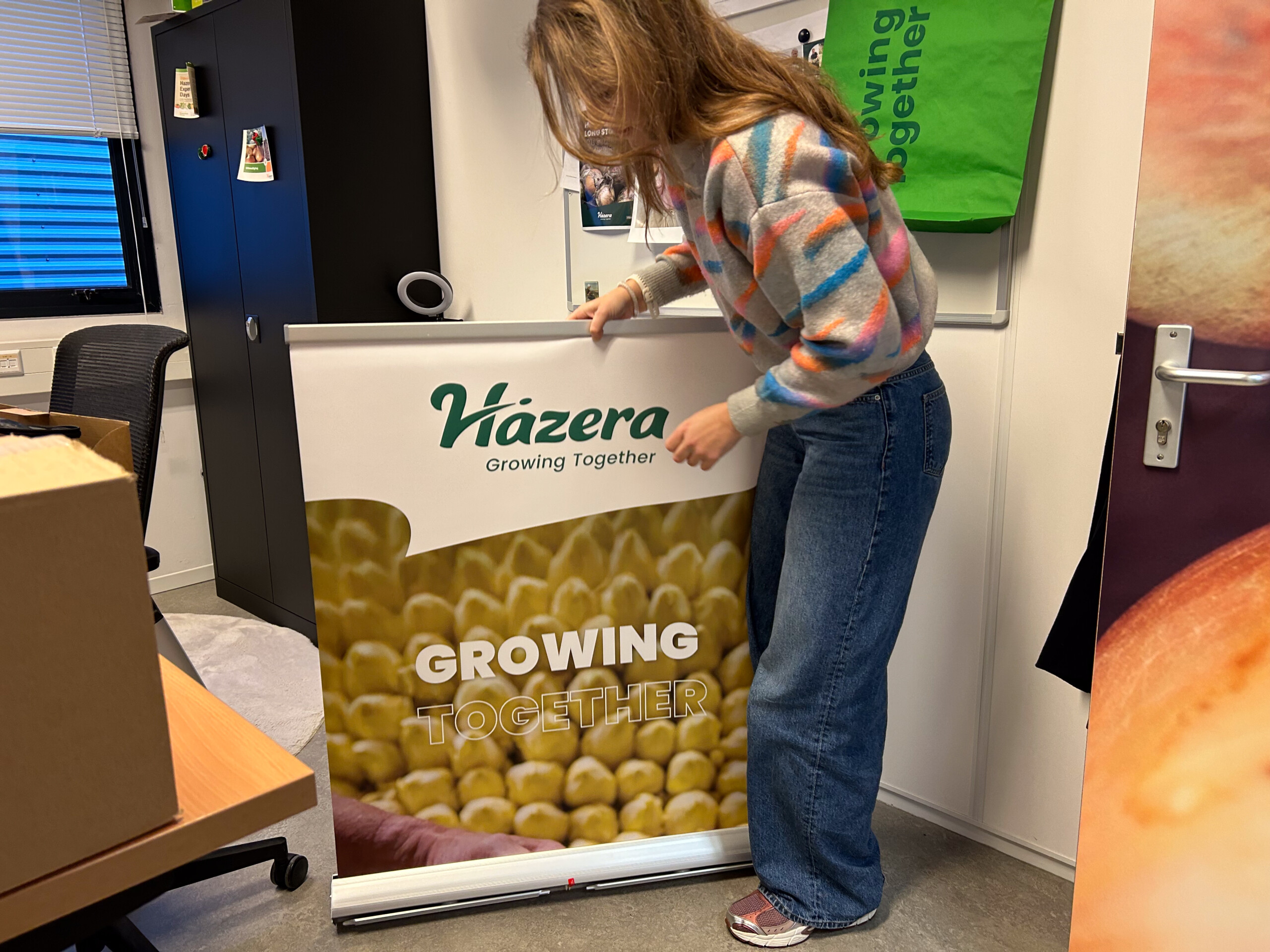 Meanwhile, another event is approaching: the Cauliflower–Broccoli Contact Day in Mijnsheerenland (the Netherlands). For both events—and for one in February—I ordered new roll‑up banners to complete our assortment for a number of crops. I unpack them, check the prints, and everything looks spot on.